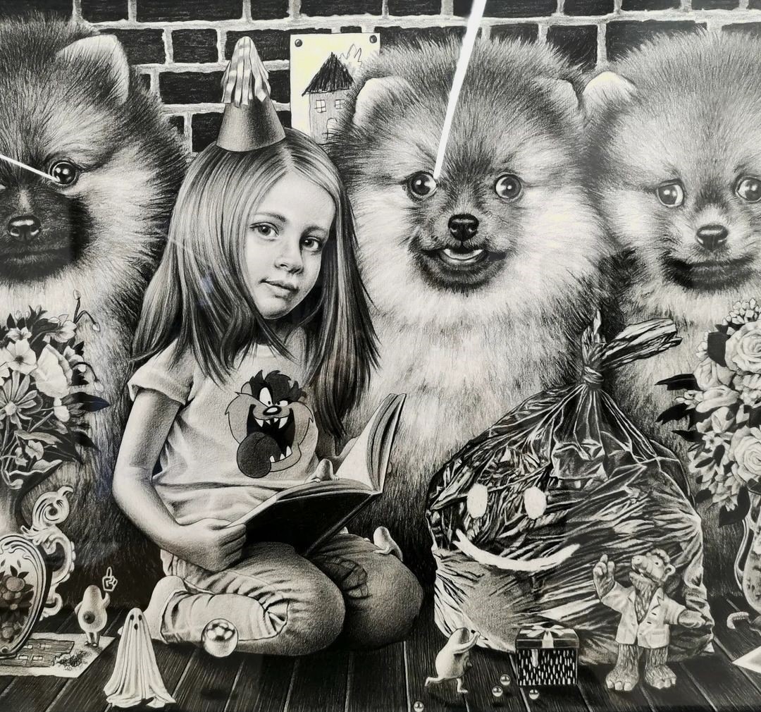 Car SylC, avec toute sa force évocatrice, joue avec nous. Sous ses œuvres vibrantes, solaires, colorées, délibérément vivantes, se meuvent des personnages énigmatiques, parfois inquiétants, souvent mélancoliques. Le reflet, ici dans une tâche d’acrylique, là dans une étendue d’eau, double alors ces fragments oniriques que nous saisissons à peine, ajoute à la dualité déjà présente dans les métaphores que l’artiste donne à voir. Doublon, alter-ego, écho, ombre, spectre. Ses personnages étranges, intemporels, aux allures de chimères infantiles, nous renvoient à nos souvenirs d’enfance, flous et distordus, à nos propres mondes intérieurs, nos rêves éthérés, tout en distillant juste ce qu’il faut de doute, de trouble et de flottement.